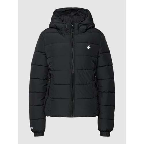 Kurtka pikowana z wyhaftowanym logo model ‘BASIC HOODED DOWN JACKET’