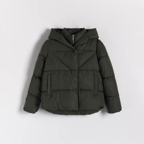 Reserved - Pikowana kurtka - Zielony kurtki damskie jesienne z kapturem