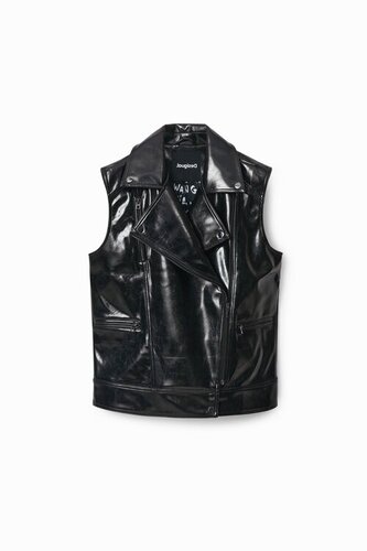 Kamizelka o kurtka przejściowa czarna damska długim kroju ze sztucznym barankiem