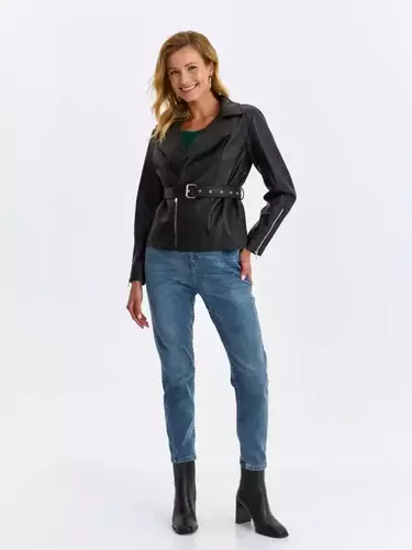 Kurtka ze sztucznej skóry z kołnierzem ze sztucznego futerka