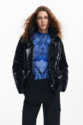 Pikowany płaszcz z kapturem