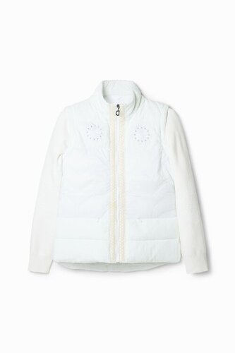 Krótka kurtka o dopasowanym kroju z kurtka zimowa biała damska różnymi fakturami