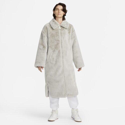 Damska długa kurtka ze sztucznego futra Nike Sportswear - Szary