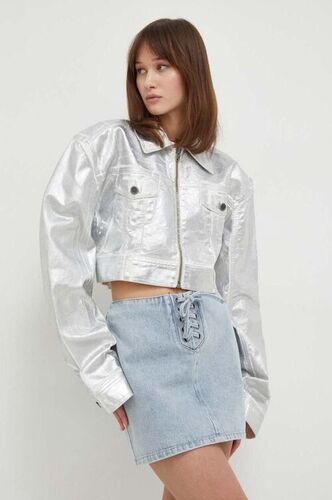 Rotate kurtka jeansowa damska kolor srebrny przejściowa oversize