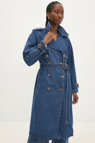 Answear Lab kurtka zimowa płaszcz trencz jeansowy kolor niebieski przejściowy