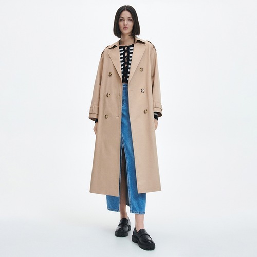 Reserved - Dwurzędowy trencz - Beżowy kurtki płaszcze damskie