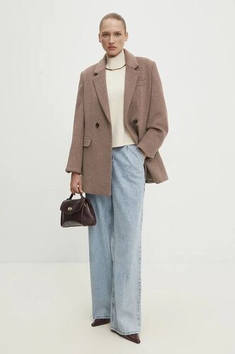 Answear Lab płaszcz wełniany kolor brązowy przejściowy dwurzędowy