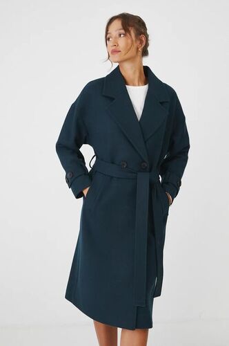 Medicine płaszcz wełniany damski kolor turkusowy przejściowy dwurzędowy