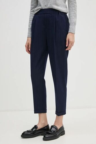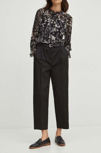 Jeśli wolisz bardziej eleganckie rozwiązania, wybierz długą koszulę w paski, taliowany żakiet i zestaw te elementy z klasycznymi legginsami. Dopełnieniem stylizacji będą czarne czółenka i skórzana torebka.