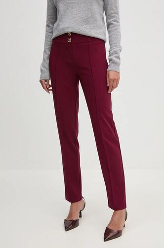 Pinko spodnie damskie kolor bordowy dopasowane high waist 102861 A213