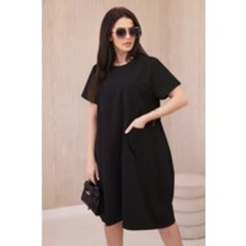 451-1 Błyszcząca sukienka z krótkim rękawkiem, dekoltem i rozcięciem na nodze - ZIELEŃ BUTELKOWA