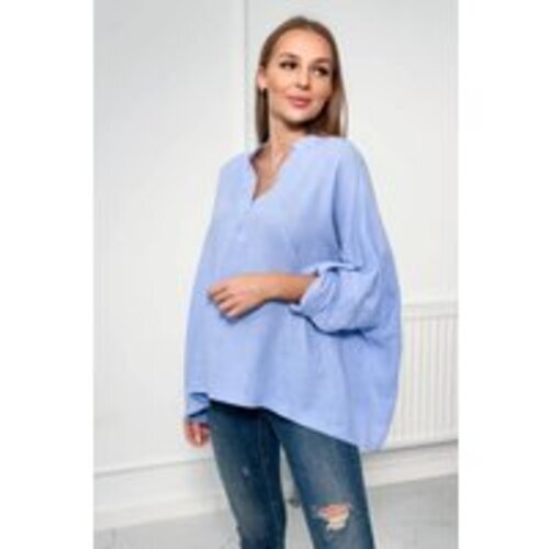 Bluzka muślinowa z podwijanym rękawem niebieska