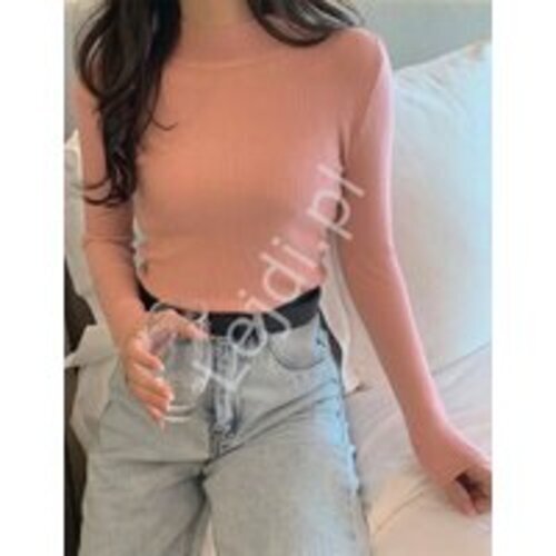 Bluzka hiszpanka z drobną falbanką pudrowy róż
