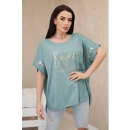 Bluzka bawełniana dekatyzowana plus size ciemno miętowa