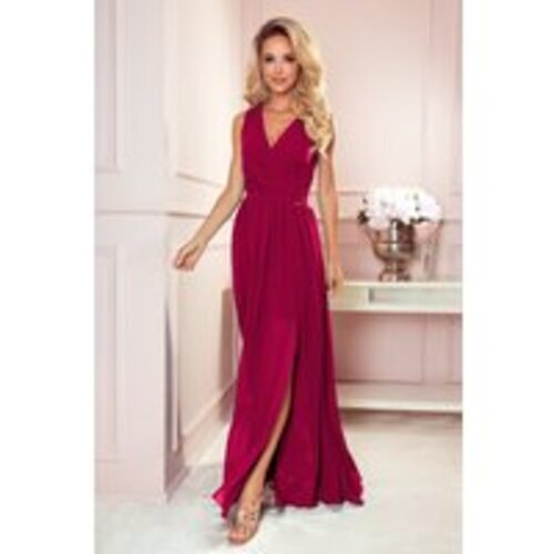 362-5 JUSTINE Długa suknia z dekoltem i wiązaniem - BORDOWA