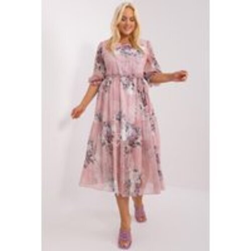 Kwiatowa pudrowo różowa sukienka na wesele, chrzest, komunie printem 9344