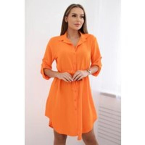 Sukienka z zapięciem na guziki i wiązaniem w talii pomarańczowa