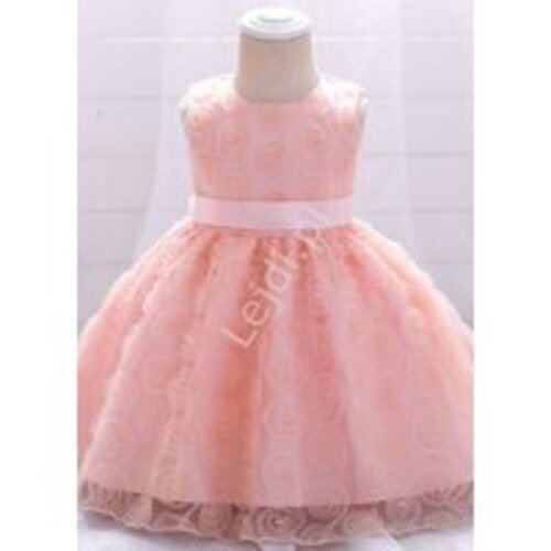 Jasno różowa sukienka dla małej dziewczynki z różyczkami 1983