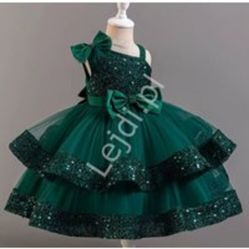 Zielona tiulowa sukienka wieczorowa dla dziewczynki z cekinami i kokardą 170