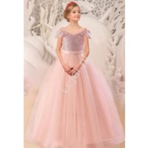 Sukienka wieczorowa dla dziewczynki z cekinami i tiulowym dołem jasno rózowa C320