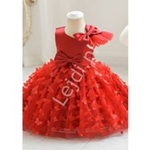 Krótka czerwona sukienka z motylkami wieczorowa dla dziewczynki m133