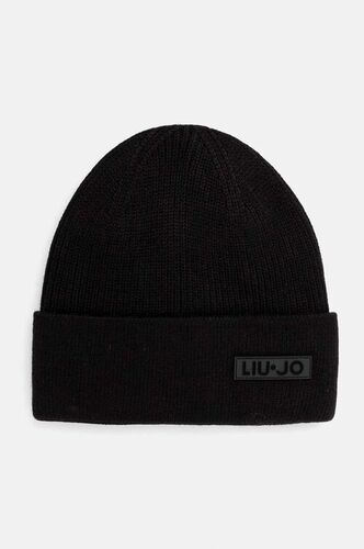 Liu Jo czapka wełniana kolor czarny z cienkiej dzianiny wełniana 2F4055 M0300
