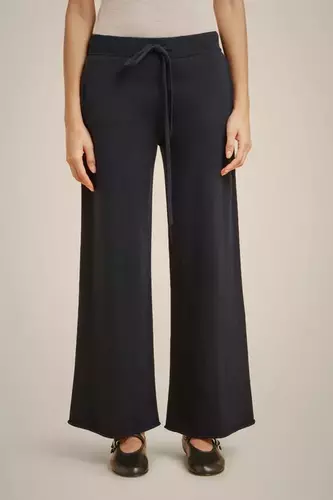 GRANATOWE KASZMIROWE SZEROKIE SPODNIE LIVIANA CONTI