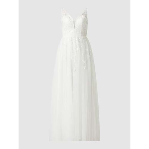 Suknia ślubna z siateczki z kwiatowymi haftami