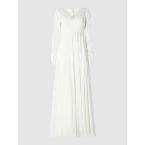 Suknia ślubna z siateczki z kwiatowymi haftami