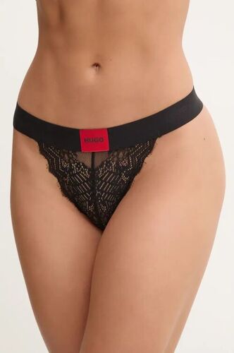 HUGO stringi majtki figi damskie kolor czarny z koronki
