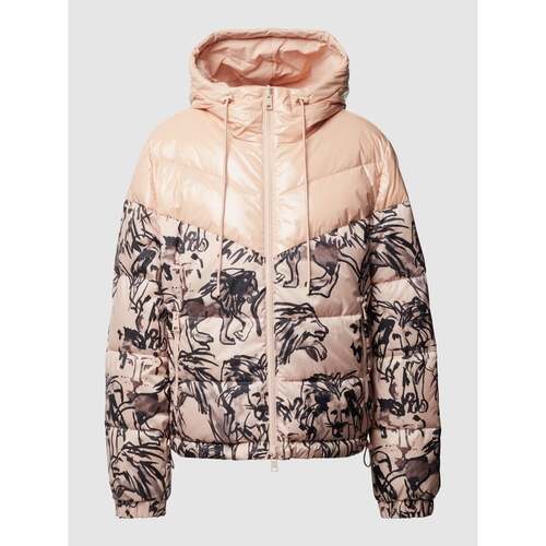 Kurtka puchowa ze zwierzęcym nadrukiem marc cain polska i obszyciem w kontrastowym kolorze