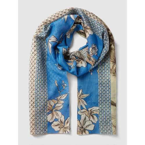 Szal z dodatkiem jedwabiu i wzorem na całej powierzchni