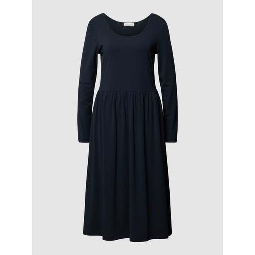 Sukienka midi z prążkowanym, okrągłym dekoltem