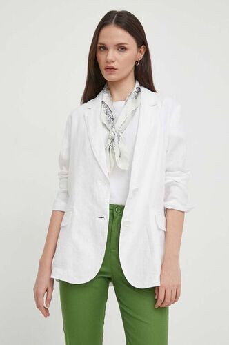 United Colors of Benetton marynarka lniana marynarki damskie białe kolor biały jednorzędowa gładka