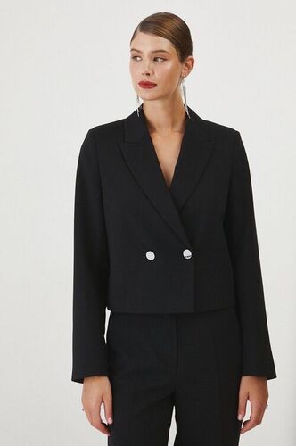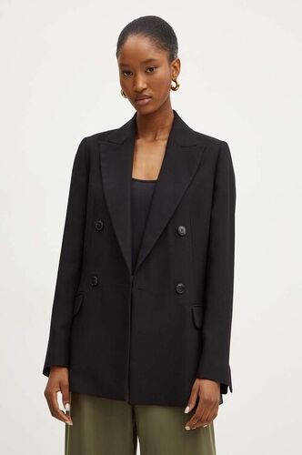 Answear Lab marynarka kolor czarny dwurzędowa gładka