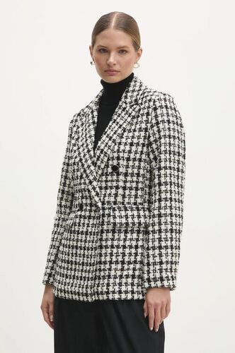 Answear Lab marynarka z wełną kolor czarny dwurzędowa wzorzysta
