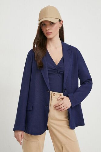 United Colors of Benetton marynarka lniana kolor granatowy jednorzędowa gładka