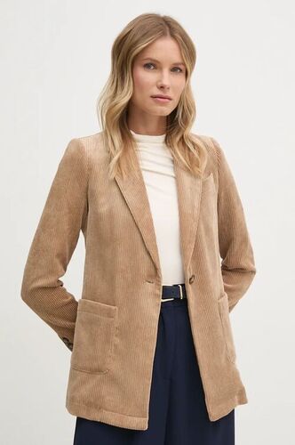La Petite Française marynarka z domieszką lnu VOYANTE kolor zielony jednorzędowa gładka