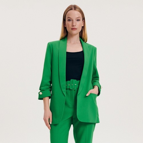 Reserved - Gładki żakiet - Zielony