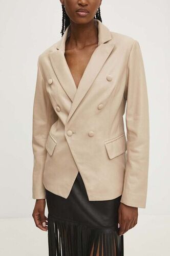 Answear Lab marynarka skórzana kolor beżowy dwurzędowa gładka