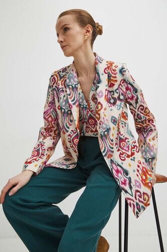Medicine marynarka damska kolor beżowy niezapinana wzorzysta