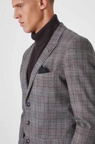 Marynarka zapinana marynarka męska szara na 2 guziki z fakturowanym wzorem model ‘Henry’