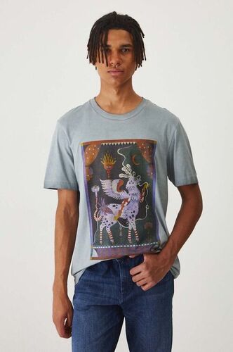 Medicine t-shirt bawełniany męski kolor niebieski medicine z nadrukiem