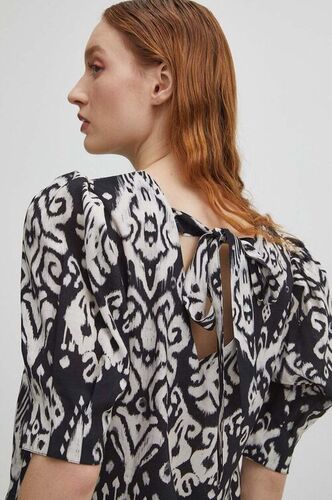 Medicine bluzka z domieszką lnu kolor beżowy wzorzysta