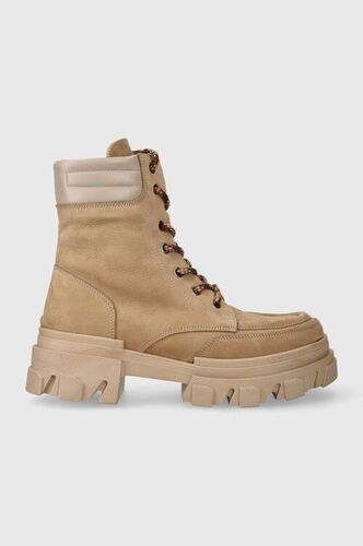 Medicine botki zamszowe damskie kolor beżowy na platformie