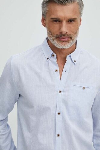 Medicine koszula lniana męska kolor niebieski regular z kołnierzykiem klasycznym