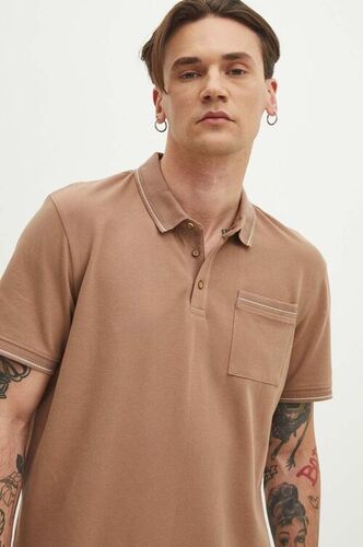 Medicine polo bawełniane męskie kolor beżowy gładki