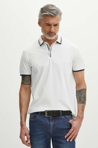 Medicine polo bawełniane męskie kolor biały melanżowy