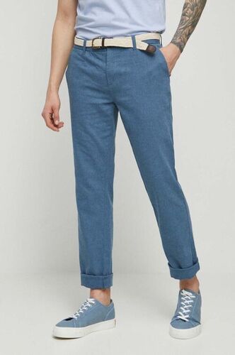 Medicine spodnie lniane męskie kolor granatowy w fasonie chinos