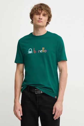 United Colors of Benetton t-shirt bawełniany męski kolor zielony z nadrukiem 3I1XU109Q